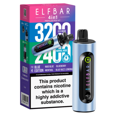 The Elf Bar 4-in-1 Prefilled Pod Kit provides a versatile vaping experience by enabling users to easily switch between four different flavours within a single device. Equipped with a 1500mAh rechargeable battery, it offers up to 3,200 puffs for extended use and convenience.